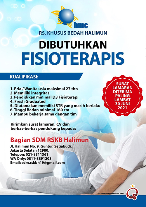 Rumah Sakit Khusus Bedah Halimun membutuhkan tenaga FISIOTERAPIS dengan kualifikasi, sebagai berikut:
