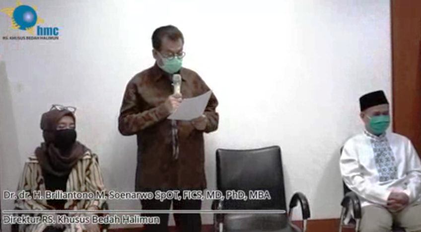 Acara yang digelar sederhana dan mengikuti prosedur protokol Covid-19 ini, diadakan di lantai 1 RSKB Halimun. Acara yang dipandu Dwi Bagus MB ini, dihadiri oleh Dr H Briliantono M Soenarwo SpOT FICS MD PhD MBA (Direktur RSKB Halimun), Hj Niken Wulandari SiP MBA (Direktur PT Halimun Medical Centre), dr H Ahsan Hatman SpAn (Dokter Spesialis Anestesi), beberapa karyawan senior dan sebagian karyawan karena sebagian lainnya melaksanakan Work From House (WFH).
